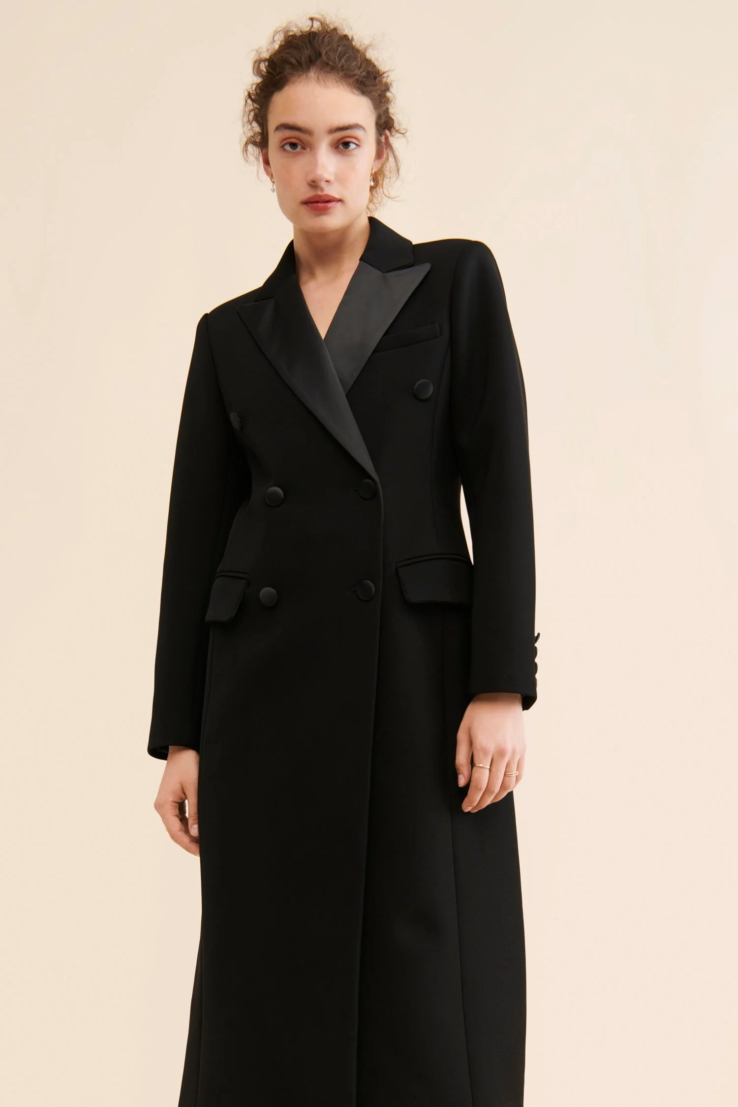 SHOP: AVEC LES FILLES DOUBLE-BREASTED TUXEDO COAT - BLACK